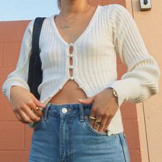 Cardigans are being worn for more reasons other than when it’s a little chilly in the office. Whether it be big puffy cardigans, or a simple cotton one, these are now being worn as our tops, and not just an overlay.